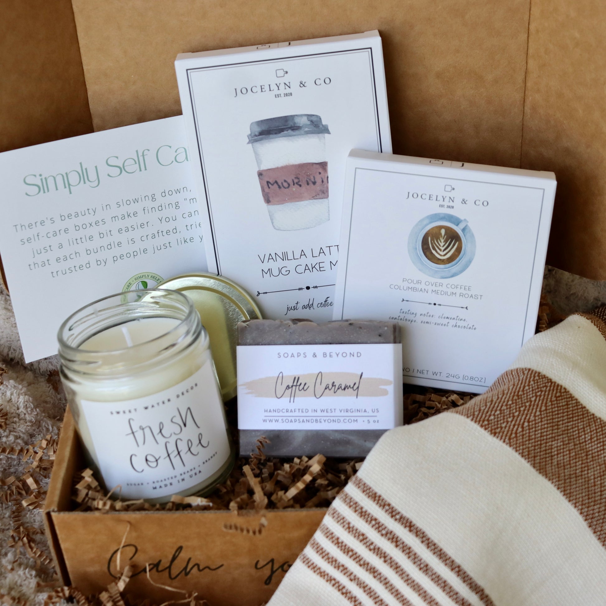 Our good-for-the-soul ‘coffee lovers’ box smells like your favorite sweet latte without even brewing one! You will love the coffee, caramel, mocha, rum cream and sweet sugar notes as they fill your space. It brings the best coffee shop smells into your own home.